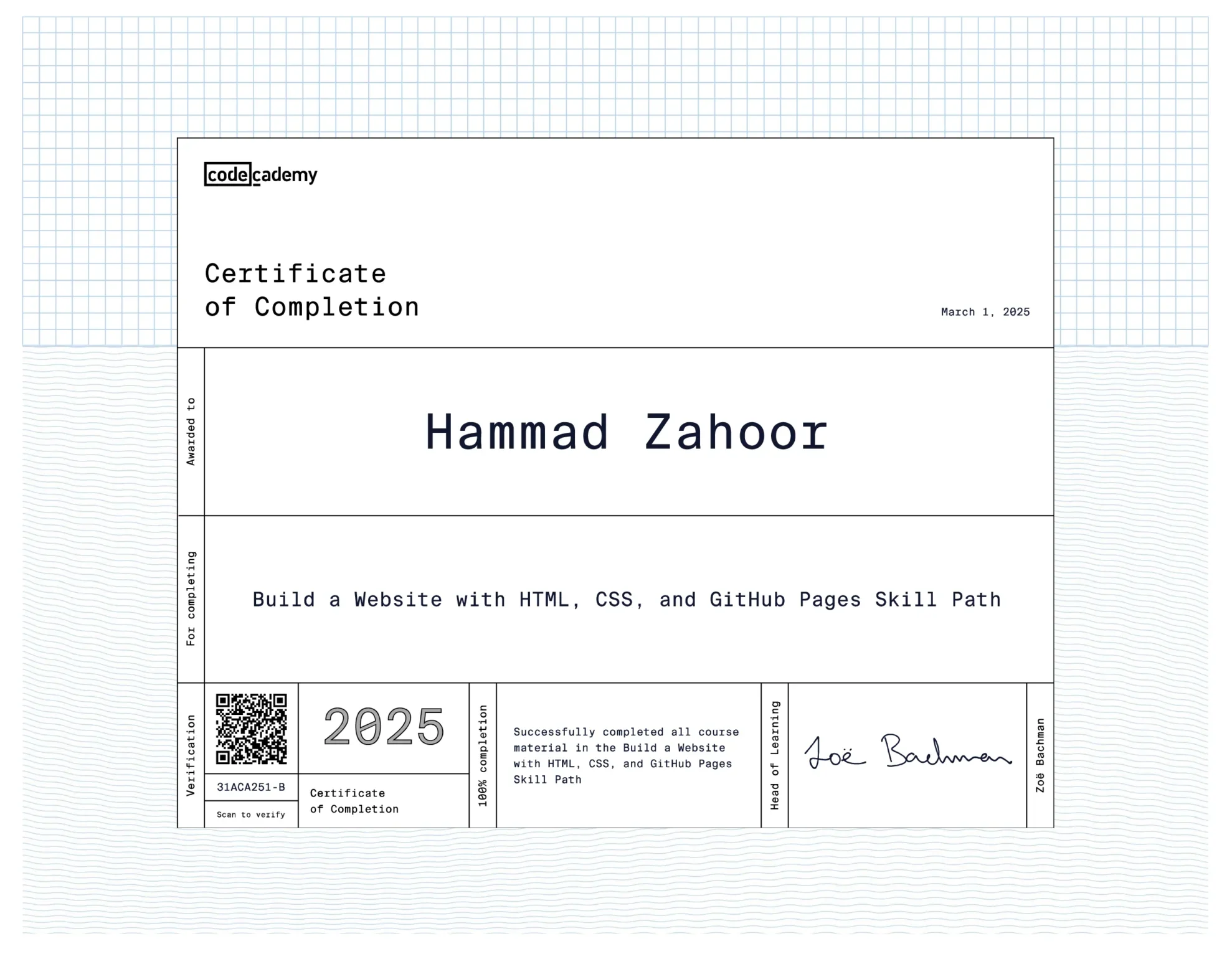 I have completed Intermediate in Computer Science (ICS) from Askaria College (2021–2023), focusing on computing, mathematics, and programming basics.